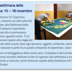 La seconda edizione della Settimana della Gentilezza si è aperta nel weekend del 9/10/11 Novembre 2018 con il progetto del Comitato Genitori Copernico “Coloriamo la Scuola” in primaria Copernico e si è chiusa nel successivo weekend del 16/17/18 Novembre 2018 con il bis dello stesso progetto nella secondaria Campioni Mascherpa.